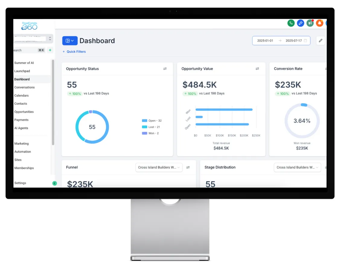 Your complete command center for marketing, automation, and client follow-up — built to help any real estate team scale with ease